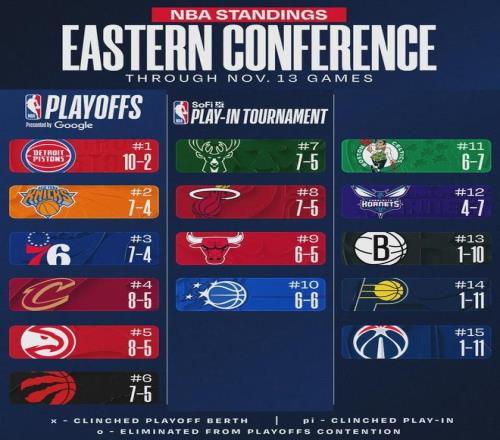 特雷杨因为右膝扭伤,已经连续缺席了8场比赛,期间老鹰6胜2负,胜率高达75%。特雷杨本赛季出战了5场比赛,期间老鹰2胜3负,胜率只有40%。截至今天赛前,老鹰8胜5负排名东部第五,和第四的骑士战绩持平。