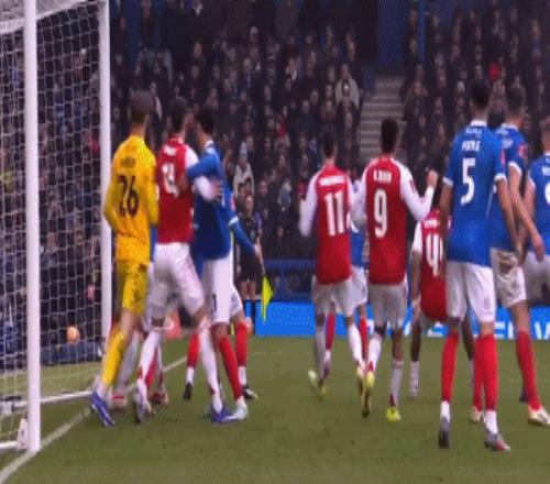 第3分钟,查普林射门被扑,毕晓普补射破门,阿森纳0-1落后朴茨茅斯!
